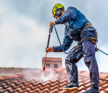Enlèvement des algues, des lichens, et différents déchets pour prévenir les dommages et allonger la vie d'utilisation du toit.